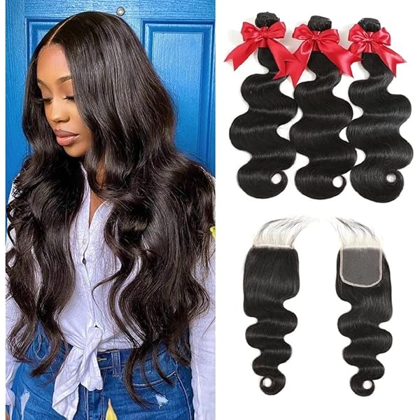Amazon Com Body Wave Bundles With Closure For Black Women 24 26 28 22 100 Unprocessed Brazilian Body Wave Human Hair 3 Bundles With 4x4 Lace Closure Free Part Natural Color Beauty Personal Care